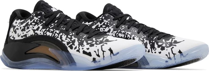 Модель Jordan Zion 3 'Gen Zion' имеет дышащий текстильный верх белого цвета с контрастным черным принтом в виде брызг. На язычке красуется значок Jumpman, а заднюю часть пятки украшает личный логотип Зиона Уильямсона. Легкая амортизация обеспечивается за счет мидсоли, изготовленной из пены Formula 23 и оснащенной пружинящим блоком Zoom Air в передней части стопы. Клетка из TPU обхватывает промежуточную подошву для боковой стабильности, а полупрозрачная резиновая подошва "елочка" обеспечивает надежное сцепление с поверхностью.