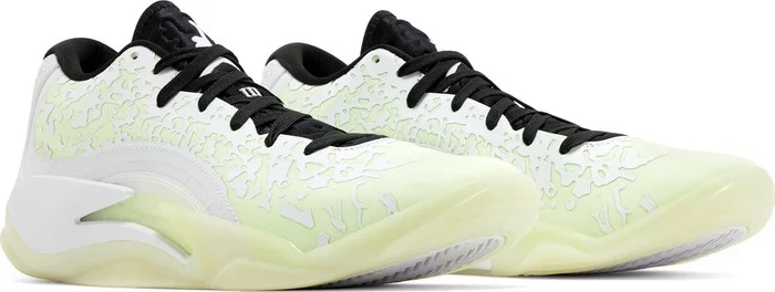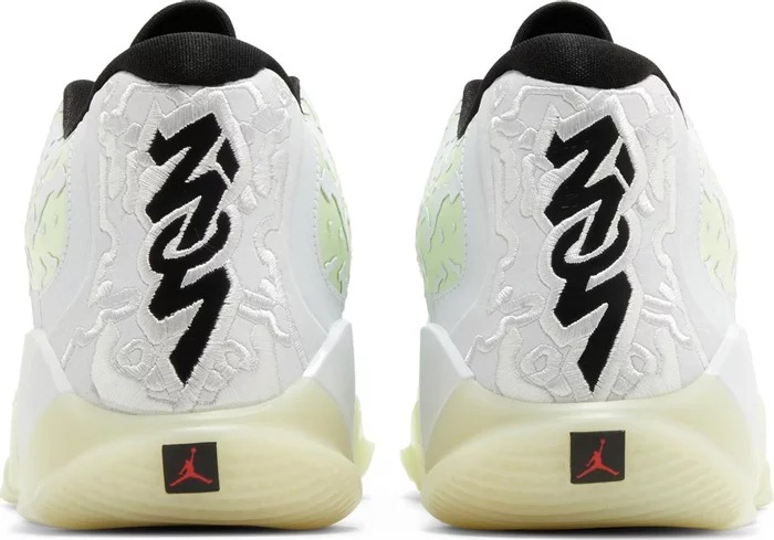 Желто-белый цвет украшает текстильный верх Air Jordan Zion 3 No Guts, подчеркнутый глянцевой графикой, созданной на основе 3D-изображения стопы Зиона. Акценты присутствуют на брендинге кроссовок, включая значок Jumpman на язычке и личный логотип Зиона на задней части пятки. Легкая амортизация обеспечивается за счет мидсоли, изготовленной из пеноматериала Formula 23 с блоком Zoom Air в передней части стопы.- Цвета: White/White/Black/Barely Volt/Volt