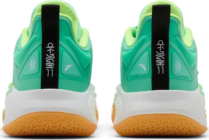 Кроссовки Anta Kai 1 Green Grails имеют желто-зеленый текстильный верх. Декоративная вышивка украшает мысок и боковую четверть. Личный логотип Кайри Ирвинга украшает язычок, совпадая с формованной деталью из TPU, которая поддерживает боковую часть мидсоли, изготовленной из легкой пены с азотным наполнителем. Верхняя пластина хвостовика из углеродного волокна обеспечивает устойчивость от скручивания стопы.- Цвета: Green/Yellow/White/Gum