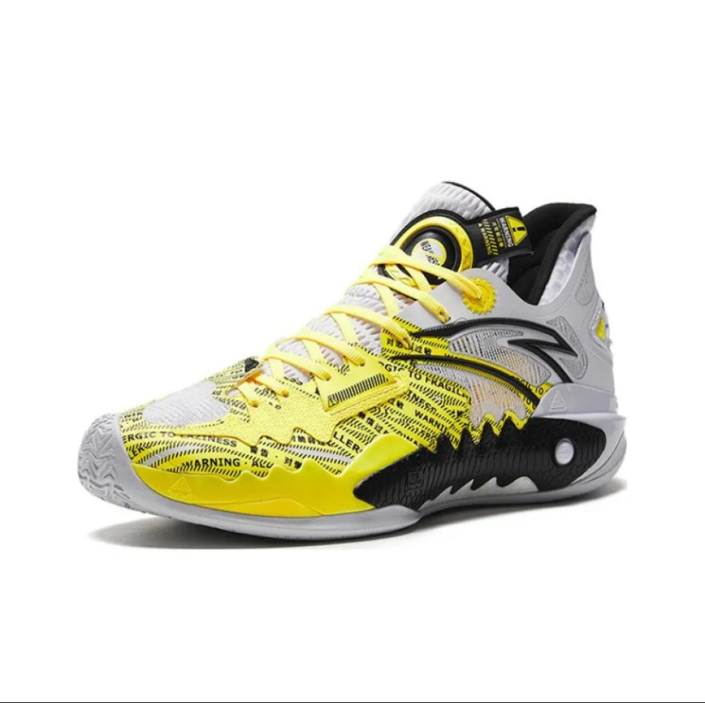 Вдохновением для этих кроссовок Anta Shock Wave 5 Allergy служат свирепые хищники и пересеченная местность. Например, на боковой части мидсоли расположена TPU-панель, напоминающая рыбью кость и имитирующая кожу крокодила или кобры. Дышащий верх выполнен в цветовом сочетании черного, белого и желтого, а неровные линии создают иллюзию зубов. Что касается технологий, то кроссовки оснащены полноразмерной промежуточной подошвой и стелькой Nitrogen, устойчивыми пластинами из TPU и карбоновой пластиной. Резиновая подошва слегка выступает над носком и выполнена из нескользящего материала.- Цвета: Yellow/White/Black