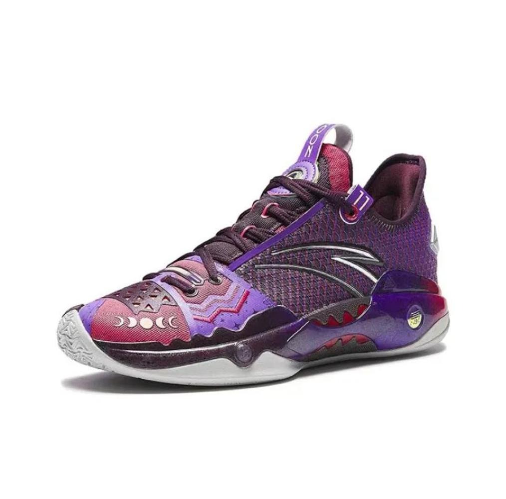 Вдохновением для этих кроссовок Anta Shock Wave 5 Pro Moon служат свирепые хищники и пересеченная местность. Например, на боковой части мидсоли расположена TPU-панель, напоминающая рыбью кость и имитирующая кожу крокодила или кобры. Дышащий верх выполнен в цветовом сочетании красного и фиолетового, а неровные линии создают иллюзию зубов. Что касается технологий, то кроссовки оснащены полноразмерной промежуточной подошвой и стелькой Nitrogen, устойчивыми пластинами из TPU и карбоновой пластиной. Резиновая подошва слегка выступает над носком и выполнена из нескользящего материала.- Цвета: Purple/Red