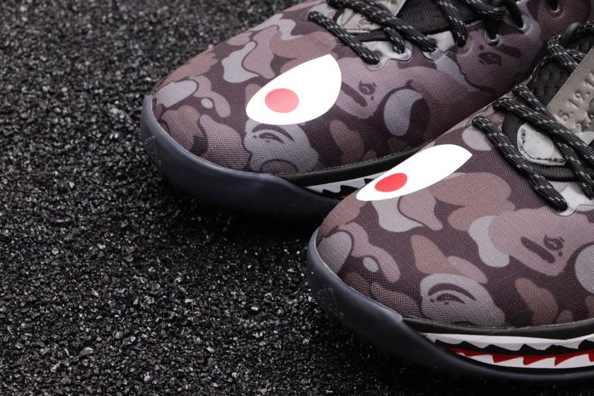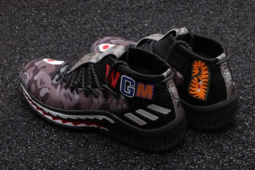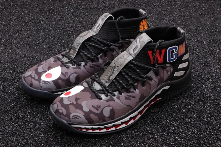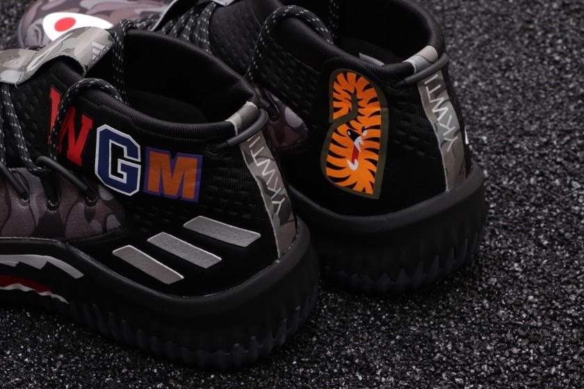 Четвёртая именная модель Дамиана Лилларда вышла в коллаборации с востребованным в мире уличным брендом BAPE. Кроссовки A Bathing Ape x adidas Dame 4 Black в чёрной камуфляжной расцветке под соответствующим названием Black Camo. Спортивный чёрный верх с классической детализацией BAPE в виде камуфляжных акцентов и рисунком зубов акулы. Пользовательские надписи "W", "G" и "M", серебряные акценты и полупрозрачная тёмно-серая подошва.- Цвета: Black/Grey/Black