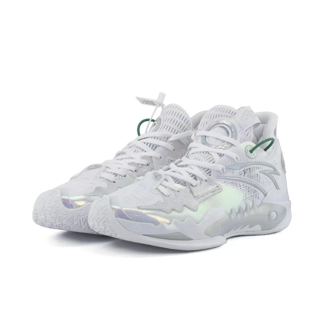 Вдохновением для этих кроссовок Kyrie Irving x Anta Shock Wave 5 Inheritance служат свирепые хищники и пересеченная местность. Например, на боковой части мидсоли расположена TPU-панель, напоминающая рыбью кость и имитирующая кожу крокодила или кобры. Дышащий верх выполнен в цветовом сочетании белого и серебристого, а неровные линии создают иллюзию зубов. Что касается технологий, то кроссовки оснащены полноразмерной промежуточной подошвой и стелькой Nitrogen, устойчивыми пластинами из TPU и карбоновой пластиной. Резиновая подошва слегка выступает над носком и выполнена из нескользящего материала.- Цвета: White/Grey