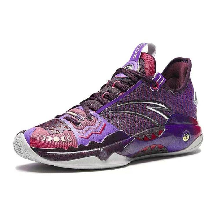 Вдохновением для этих кроссовок Kyrie Irving x Anta Shock Wave 5 Pro Moon служат свирепые хищники и пересеченная местность. Например, на боковой части мидсоли расположена TPU-панель, напоминающая рыбью кость и имитирующая кожу крокодила или кобры. Дышащий верх выполнен в цветовом сочетании сливового и красного, а неровные линии создают иллюзию зубов. Что касается технологий, то кроссовки оснащены полноразмерной промежуточной подошвой и стелькой Nitrogen, устойчивыми пластинами из TPU и карбоновой пластиной. Резиновая подошва слегка выступает над носком и выполнена из нескользящего материала.- Цвета: Midnight Plum/Periwinkle Red