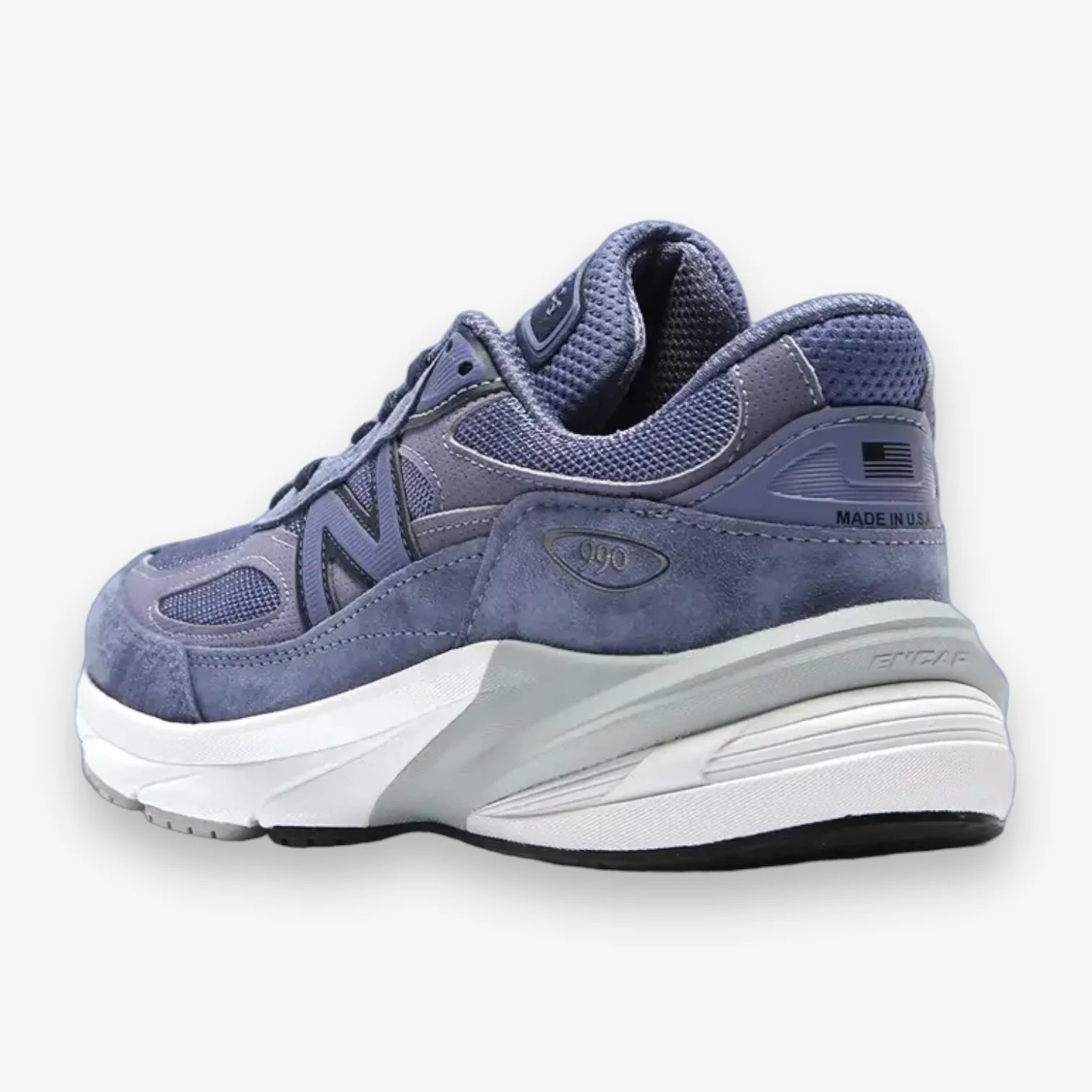 Модель New Balance 990v6 Made in USA Purple сочетает в себе вентилируемую сетку синего цвета с накладками в тон из замши и искусственной кожи. Кроссовки опираются на промежуточную подошву ENCAP от New Balance с амортизацией из пены FuelCell и прочным полиуретановым ободом.- Цвета: Purple/Navy