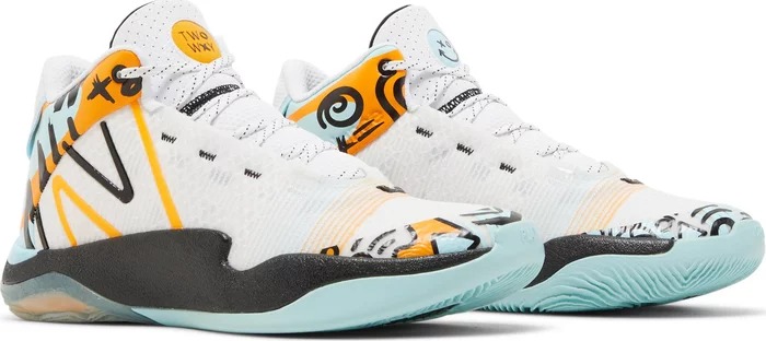 Вторая модель в линейке TWO WXY, "Marigold Blue" V2, использует конструкцию Kinetic Stitch по всему синтетическому верху для фиксации, которая адаптируется к каждому мельчайшему движению. Для игроков, не имеющих определенной позиции, в модели со средним верхом используется художественно вырезанный средний воротник, обеспечивающий стабильность голеностопа, а также любимая пена FuelCell от NB, придающая вам ускорение в любом направлении, которое вы считаете нужным. Несочетаемые оранжевые и светло-голубые логотипы TWO WXY расположены на язычке над белыми шнурками с черными точками, а сама цветовая схема представляет собой художественный подход к скромной белой расцветке.- Цвета: White/Bleach Blue