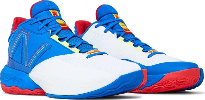Кроссовки New Balance Two WXY V4 Mile High - это баскетбольная обувь бренда, выполненная в цветах, вдохновленных ретро-формой команды Denver Nuggets. Легкий верх из дышащего белого текстиля с панелями из синтетической замши кобальтово-синего цвета украшен фирменным логотипом "N" с радужной вышивкой. Разделенная подошва Fresh Foam X обеспечивает легкую амортизацию, а пена Fuel Cell в пятке - возврат энергии. Двухцветная резиновая подошва синего и красного цвета обеспечивает разнонаправленное сцепление с поверхностью.- Цвета: Optic White/Cobalt/True Red