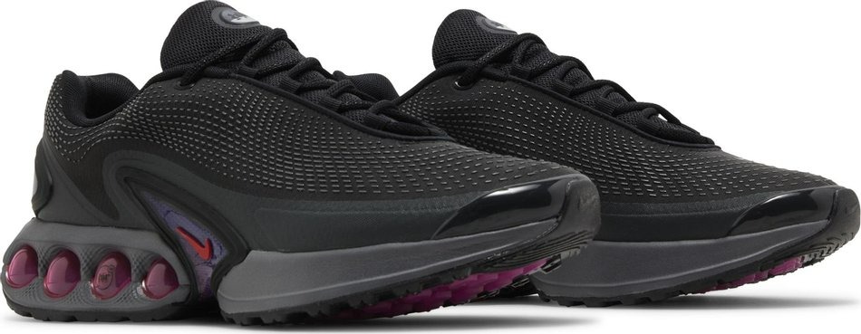 Серые кроссовки Nike Air Max DN All Night с филоновой подошвой со встроенной системой Dynamic Air - двухкамерным четырехтрубным блоком Nike Air в пятке. При каждом шаге воздух свободно проходит между трубками в каждой камере, обеспечивая плавный переход и комфортную посадку. Верхняя часть выполнена из черного текстиля с тактильной текстурированной накладкой и значком DN Air Max на пятке из TPU.- Цвет: Black/Dark Smoke Grey/Anthracite/Light Crimson