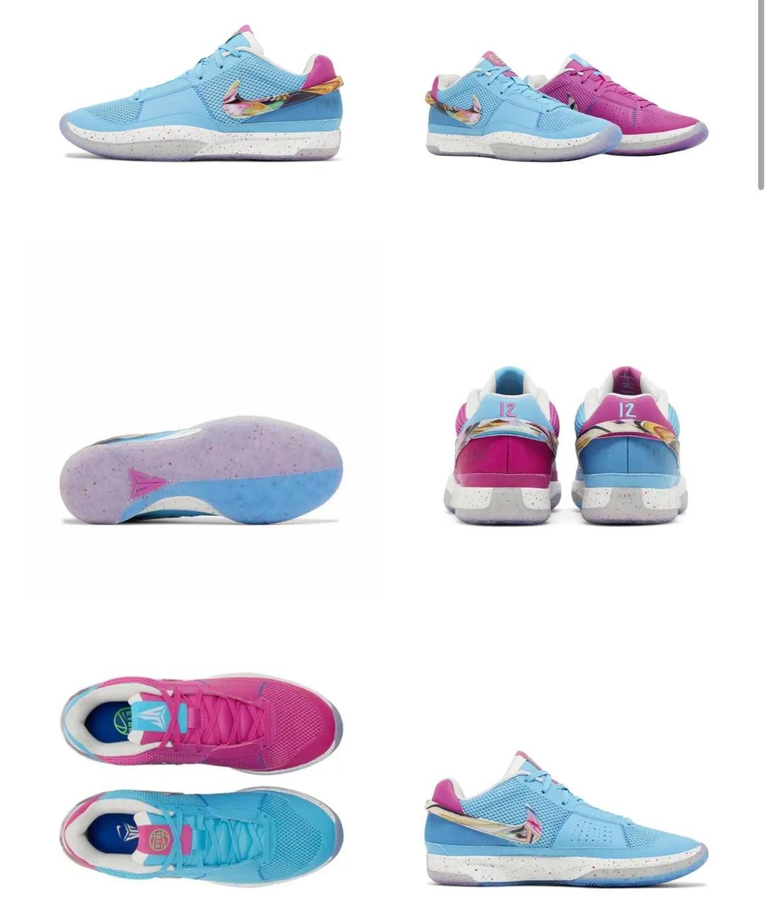 В соответствии с широко распространенной молодежной эстетикой несочетаемого, фиолетовая основа нанесена на правую часть Nike Ja 1 EYBL, в то время как левая погружена в яркую желтую схему, акцентированную на пятке и язычке. В то время как сетчатые подкладки, конструкция язычка и пяточная стойка продолжают тональную композицию, идентичные украшения заполняют среднюю часть стопы в мраморном многоцветье, в то время как полупрозрачный протектор под ногами начинается с ярко-голубой пятки и носочной части с градиентными вкраплениями.- Цвета: Multi-Color/Multi-Color