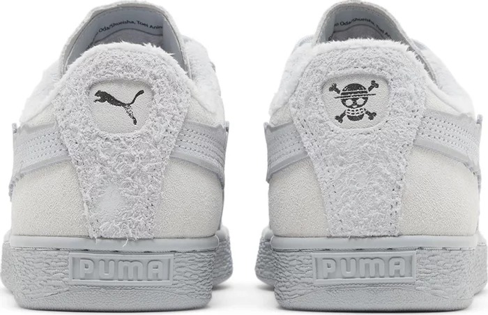 В этой коллаборации классический уличный стиль PUMA сочетается с мотивами приключенческого острова One Piece из самого популярного аниме во всем мире. Верх кроссовок выполнен из серой ворсистой замши, гофрированные шнурки выполненные в той же цветовой гамме дополнены тисненым кобрендингом PUMA x ONE PIECE. На язычке пятки изображен логотип в виде черепа. Классическая резиновая подошва Puma Suede дополняет дизайн верха кроссовок.- Цвета: Feather Grey/Platinum Grey