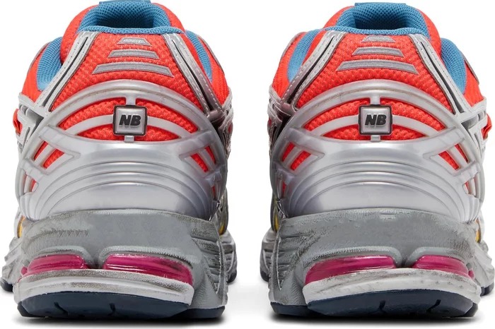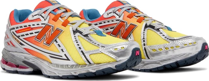 Модель Salehe Bembury x New Balance 1906R Lava, выпущенная в составе двух частей "Heat Be Hot Pack", имеет дышащий сетчатый верх, который переходит от ярко-желтого цвета на носке к ярко-красному на пятке. Градиентный дизайн контрастирует с синтетическими серебристыми накладками и внутренней отделкой из синего текстиля. Пробковая стелька украшена двойным брендингом NB и Salehe Bembury. Кроссовки опираются на серую промежуточную подошву ABZORB с амортизацией SBS в пятке.- Цвета: Orange/Yellow/Silver