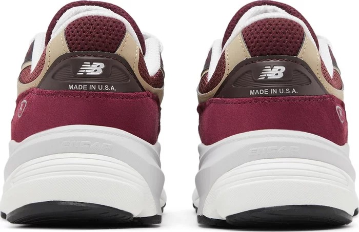 Модель Teddy Santis x New Balance 990v6 Made in USA Burgundy Tan демонстрирует осенние оттенки и обтекаемую эстетику. Бордовый сетчатый верх, освобожденный от стандартного седла в средней части стопы, украшен тональными замшевыми накладками, переходящими с пятки на носок. Вокруг воротника расположены детали из кожи цвета загара. Легкая амортизация обеспечивается благодаря промежуточной подошве ENCAP от New Balance, состоящей из пружинистой пены FuelCell с прочным полиуретановым ободом.- Цвета: Burgundy/Tan