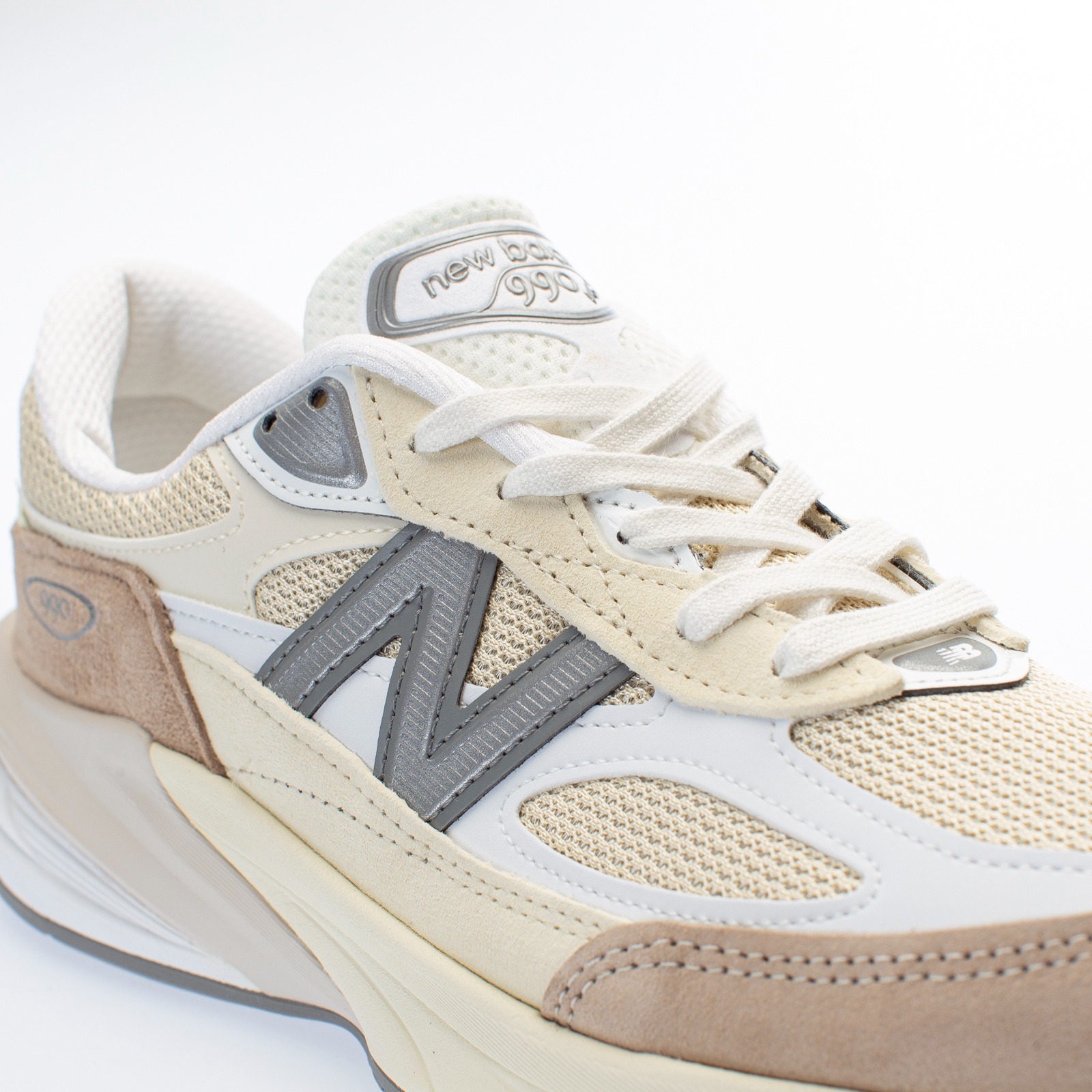 Модель Teddy Santis x New Balance 990v6 Made in USA Mindful Grey привносит спокойные, нейтральные тона в классику беговой обуви. Матовый серебристый логотип 'N' украшает верхнюю часть кроссовок, выполненную из сетки кремового цвета с накладками из замши в тон. Текстурированная бежевая замша обволакивает носок и пятку, а белая кожаная отделка вдоль средней части стопы подчеркивает плавные линии кроссовка. Кроссовки опираются на объемную промежуточную подошву ENCAP, состоящую из мягкой пены FuelCell с прочным полиуретановым ободом.- Цвета: Mindful Grey/Bone