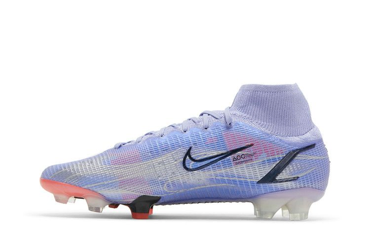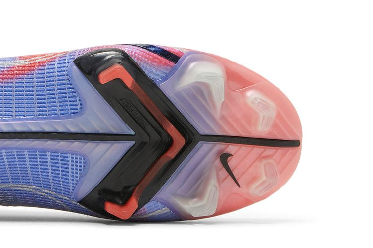 Кроссовки Kylian Mbappé x Nike Mercurial Superfly 8 Elite 'Flames' украшены красочной графикой, отражающей скоростную игру французского футболиста. Огненный дизайн оживляет верхнюю часть Flyknit пастельных тонов, укрепленную текстурированной накладкой, которая обеспечивает улучшенное касание при дриблинге на поле. Брендинг "KM" расположен на пятке и носочной части, последняя оснащена технологией NikeGrip, которая надежно фиксирует стопу. Подошва оснащена стратегически расположенными шевронными шипами, предназначенными для сцепления с короткой травяной поверхностью.