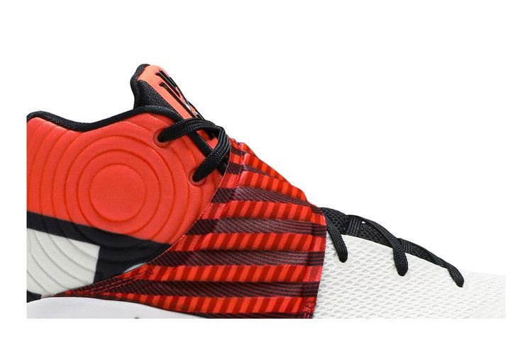 Вдохновленные мастерством Кайри Ирвинга, Kyrie 2 'Crossover' имеют белый сетчатый корпус и межподошву, а также графический принт на ремешке и лодыжке. На пятке жирными буквами написано "KYRIE", а яркая предупреждающая лента красного цвета служит предупреждением для потенциальных защитников.