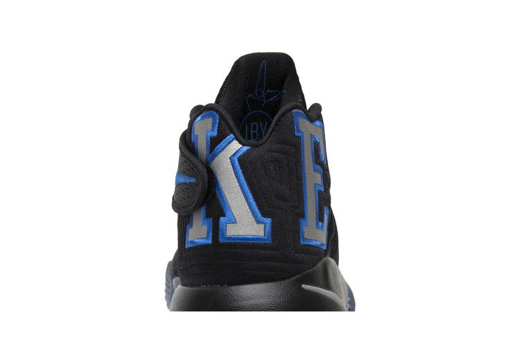 Отдавая дань уважения альма-матер Кайри Ирвинга, эта модель Kyrie 2 вдохновлена выездной формой Дьюка. Верхняя часть черного цвета со светоотражающими серебристыми акцентами и акцентами Game Royal, а также ледяная голубая полупрозрачная подошва. На задней стороне пятки большими светоотражающими буквами написано "DUKE", чтобы завершить демонстрацию цветов университета Дьюка.