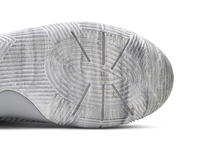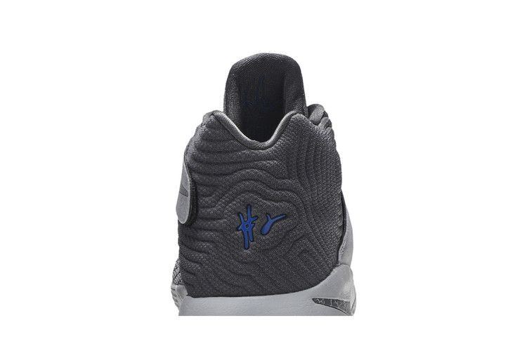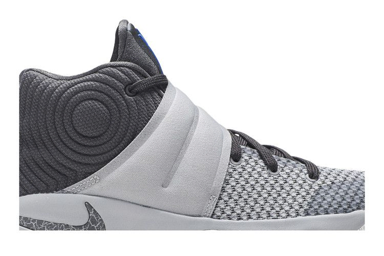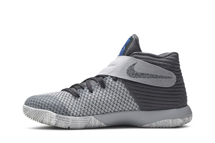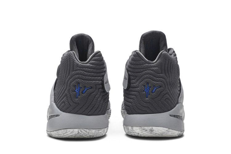 Эта итерация Kyrie 2 в цветовой гамме "Омега", вдохновленная Дьюком, выполнена в серо-голубой гамме. От ремешка до межподошвы, серые тона покрывают весь силуэт, а также синие логотипы на язычке и подошве.