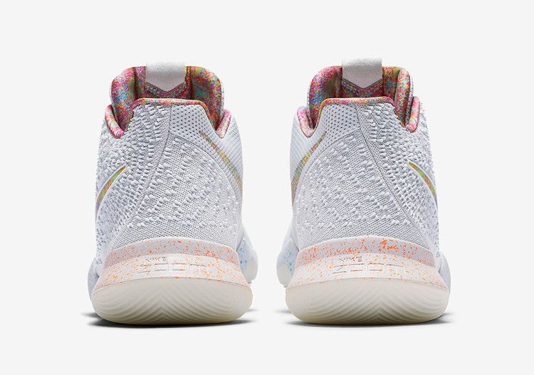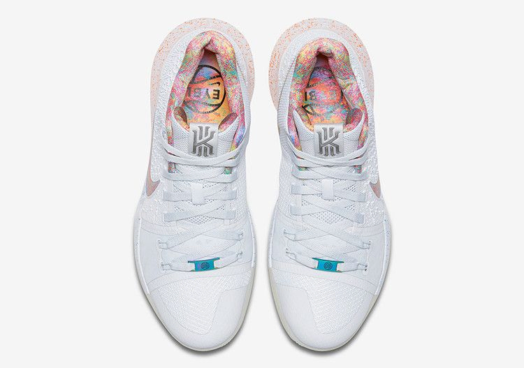 Компания Nike отметила свой ежегодный турнир Elite Youth Basketball League (EYBL) эксклюзивной версией Kyrie 3, которая изначально была доступна только для игроков этого турнира. Верх кроссовок выполнен из белой сетки и усилен тросами Flywire в нижних люверсах, разноцветные акценты выделяют носочную часть и брендинг. Кроме того, в кроссовке использована пятнистая межподошва с радужными акцентами на шнурках для нестандартной отделки, а на стельке красуется логотип EYBL.