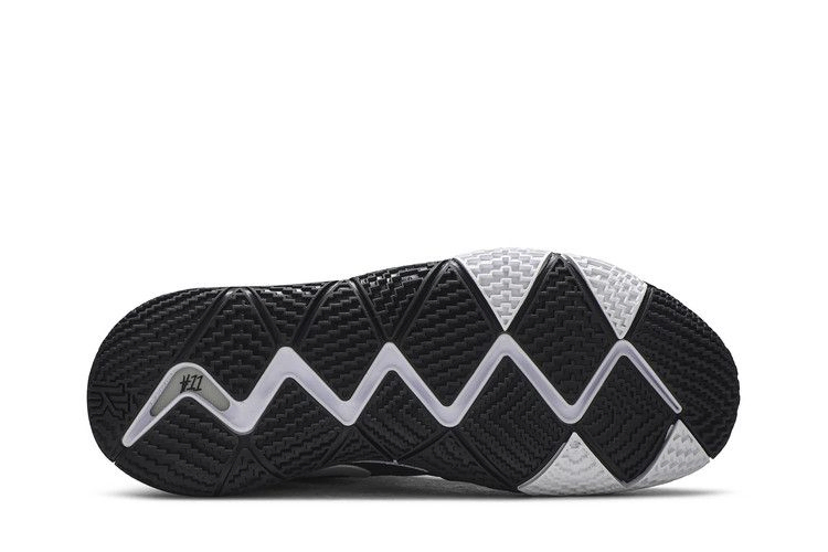 Модель Kyrie 4 "Black" была разработана для обеспечения максимального сцепления, амортизации и надежной фиксации, которые так необходимы Кайри Ирвингу на площадке. Фирменные кроссовки имеют черный верх из фликнита с тросами Flywire для дополнительной поддержки, амортизационный блок Zoom Air в пятке и белые акценты на крапчатой межподошве, брендинг Swoosh на боковине и пятке. Подошва кроссовок также имеет изогнутую конструкцию и микропротектор.