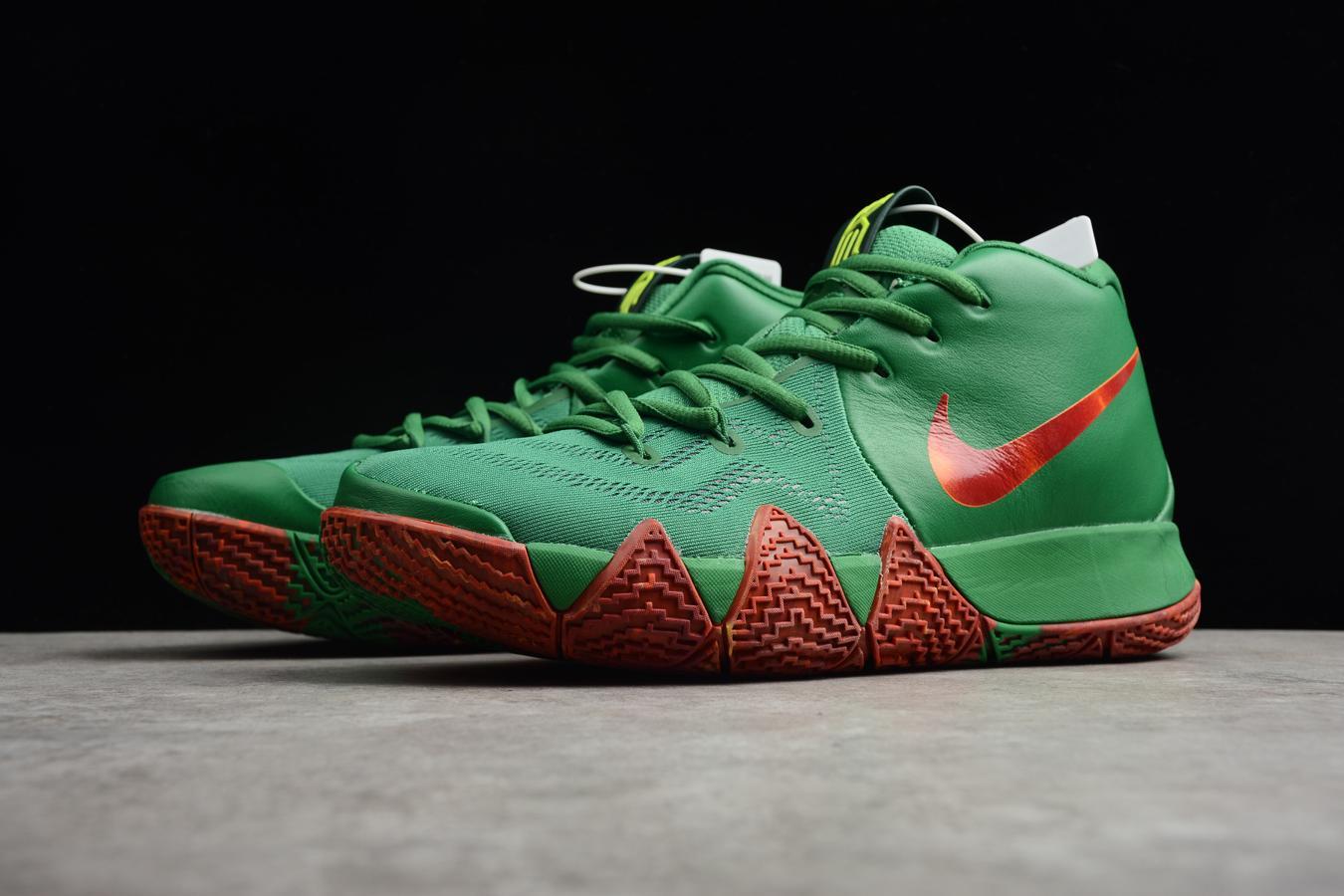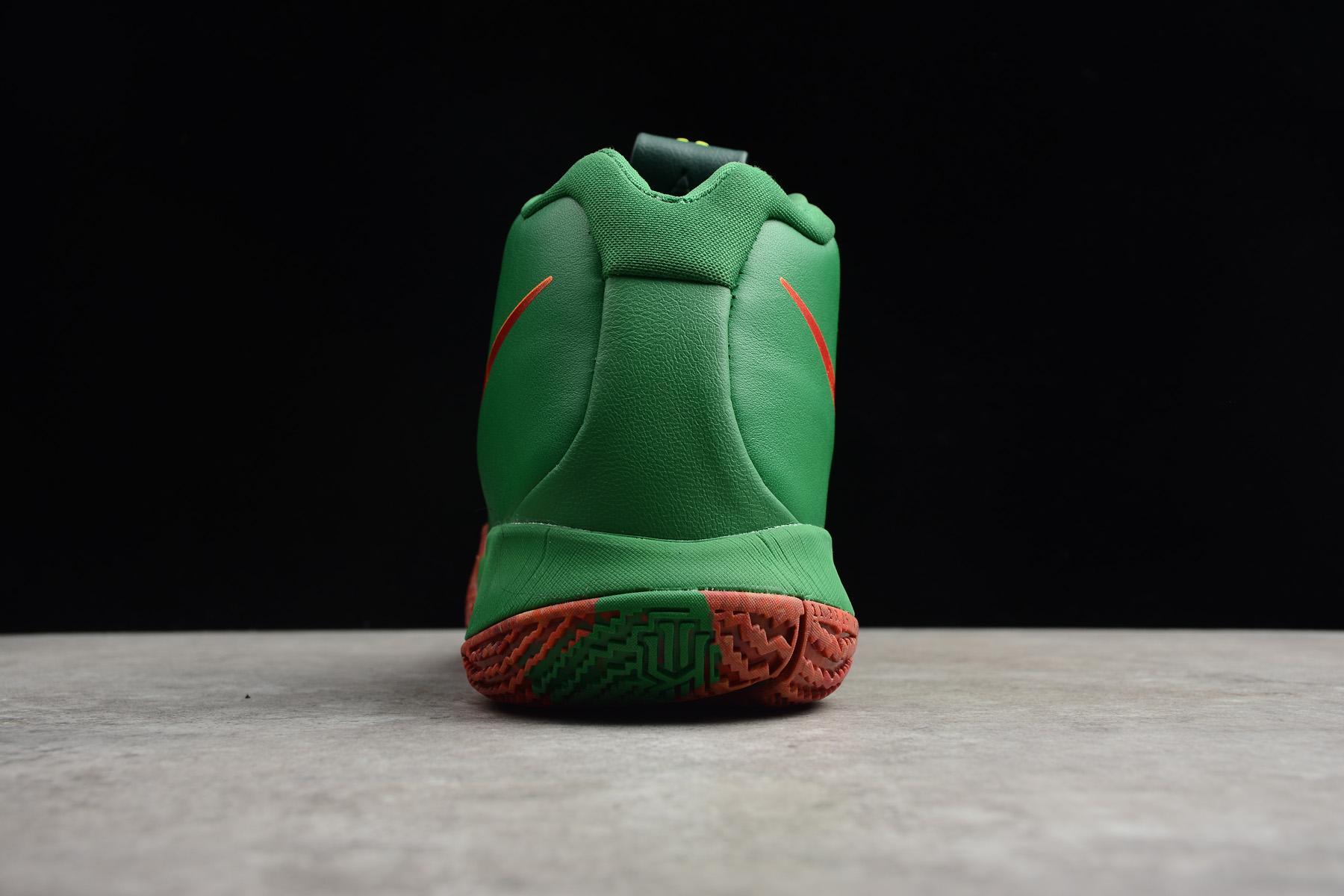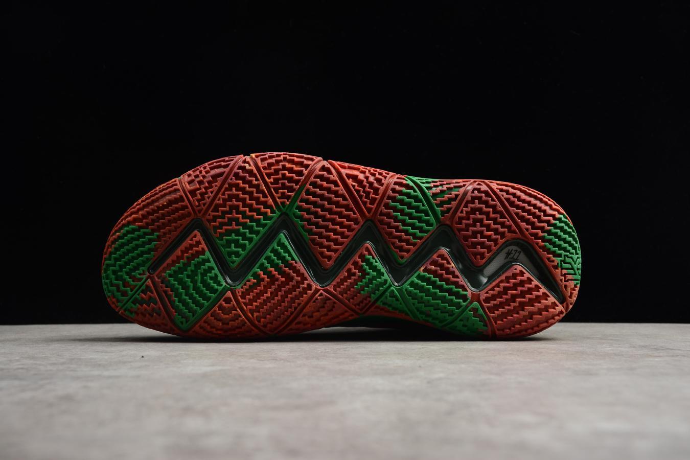 Зелёно-оранжевая баскетбольная, ставшая уже культовой, модель Кайри 4. В модели Kyrie 4 "Fall Foliage", выполненной в осенних тонах, использованы преимущественно зеленые оттенки кожи и сетки, контрастирующие с яркими оранжевыми оттенками на Swoosh и подошве. Кабели Flywire на заднике помогают укрепить среднюю часть стопы, а рисунок сцепления на подошве распространяется на боковые стенки подошвы для увеличения сцепления с поверхностью.