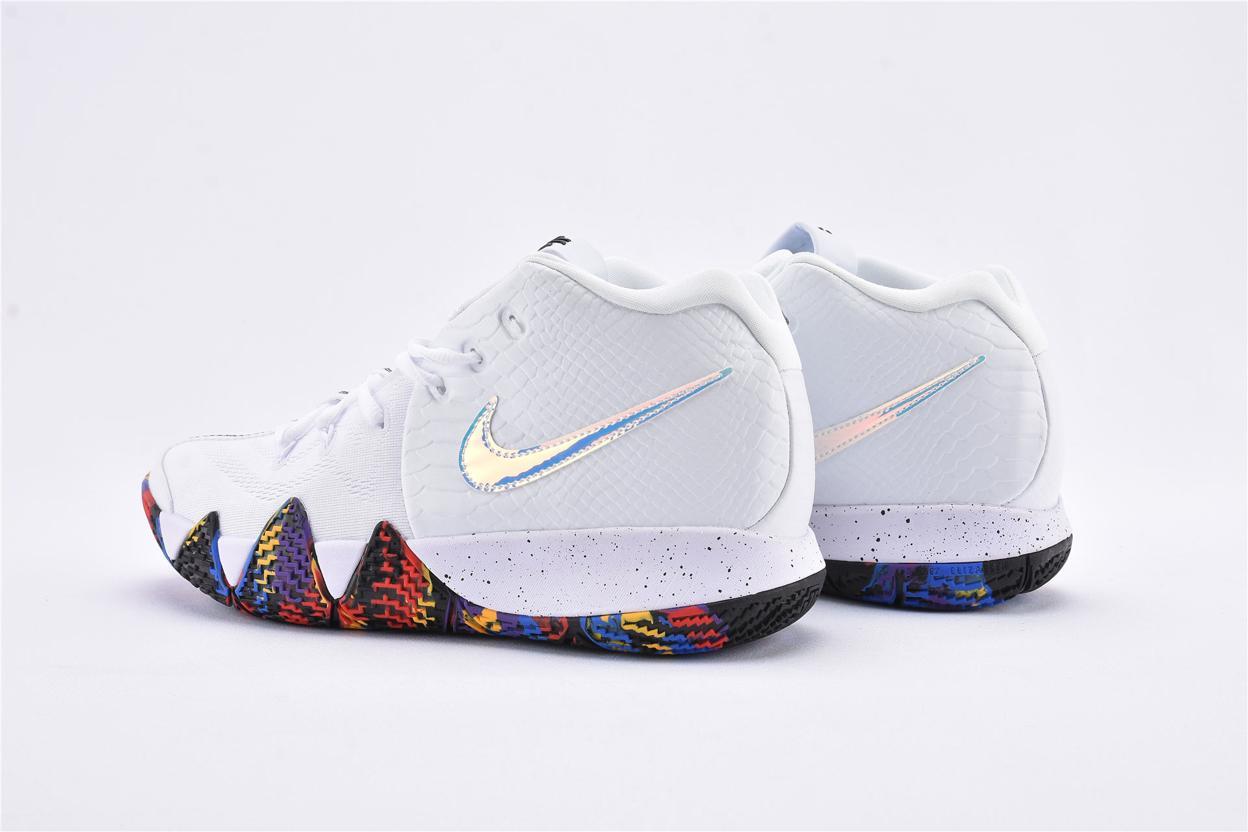 Выпущены в марте 18 года в паке March Madness. Выпущенный в соответствии с началом баскетбольного турнира NCAA 2018 года, этот выпуск четвертой фирменной обуви Nike Кайри Ирвинга имеет белую верхнюю пятнистую мидсоль и переливающийся Swoosh. Выдающийся элемент «Турнира NCAA» Kyrie 4 находится на подошве, где различные оттенки красного, желтого, синего, фиолетового и черного цвета объединяются, создавая мраморный разноцветный узор. Ознакомьтесь с подробными фотографиями и закажите эту расцветку Kyrie 4 NCAA в розничных магазинах или в сервисе Slamdunk- Цвета: White/Multi-Color