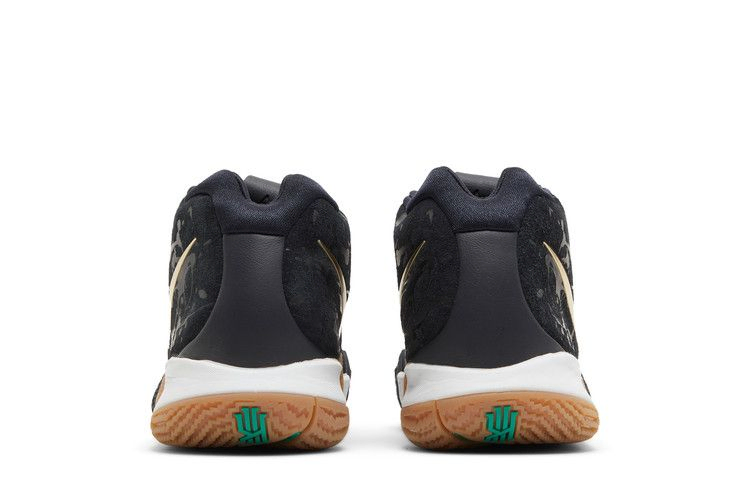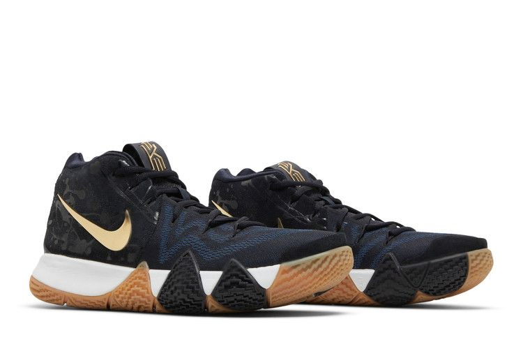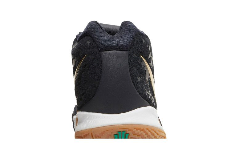 Темный сетчатый верх в четвертых кроссовках Кайри Ирвинга от Nike под названием Pitch Blue дополнен золотистым металликом Swoosh и белой подошвой. Задняя панель украшена узором в виде брызг, а зеленая зигзагообразная полоса Celtics проходит по центру подошвы. Подпись разыгрывающего, напечатанная на стельке, не оставляет сомнений в принадлежности кроссовок.