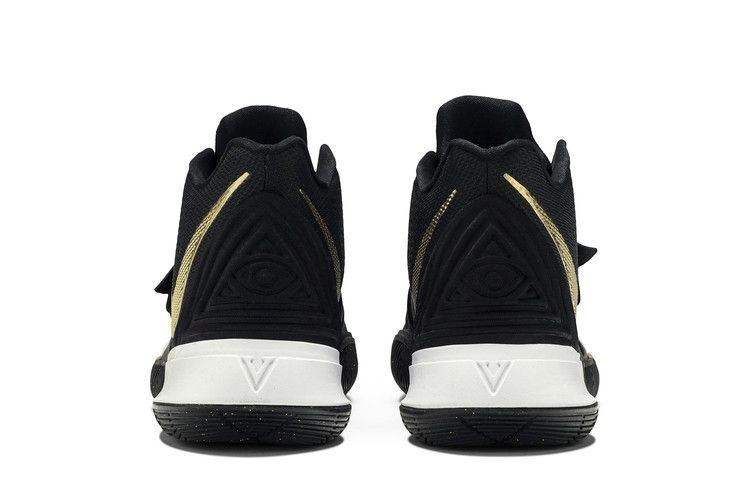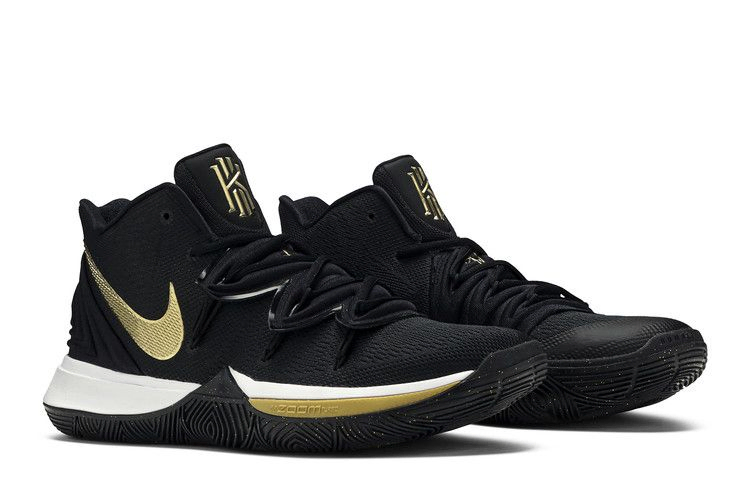 Кроссовки Nike Kyrie 5, пятая модель в фирменной линейке суперзвезды баскетбола Кайри Ирвинга, была выпущена в июне 2019 года в этой расцветке "Черный металлик с золотом". В конструкции кроссовок использована сетка, обеспечивающая воздухопроницаемость и гибкость. Верхняя часть, украшенная золотыми акцентами, поддерживается системой Zoom Air для легкой амортизации.