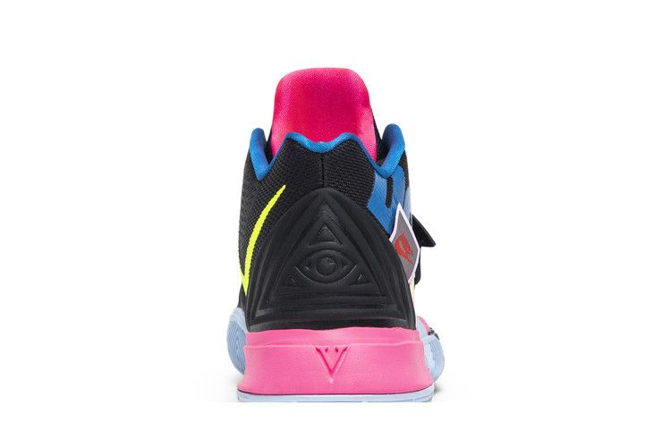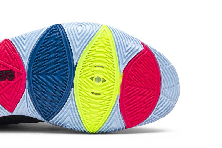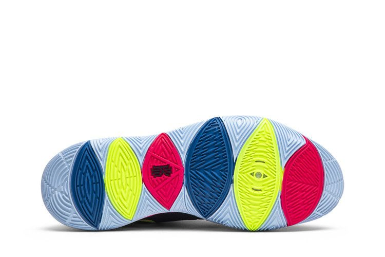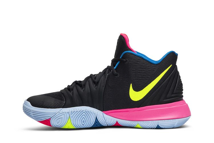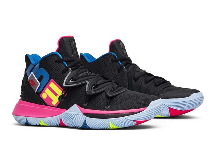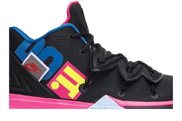 В модели Kyrie 5 "Just Do It" 5-я подпись Кайри Ирвинга используется в качестве рекламного щита для слогана Nike. В соответствии со своим происхождением в конце 80-х, слоган выполнен в дневных оттенках эпохи Рейгана, контрастирующих на фоне черного сетчатого верха. Гиперрозовая отделка межподошвы дополнена разноцветной подошвой, которая загибается по бокам, чтобы обеспечить сцепление с поверхностью при быстрых движениях.
