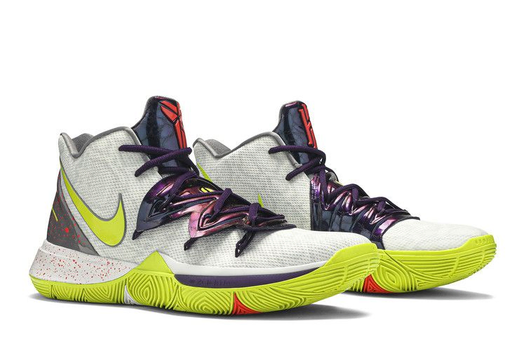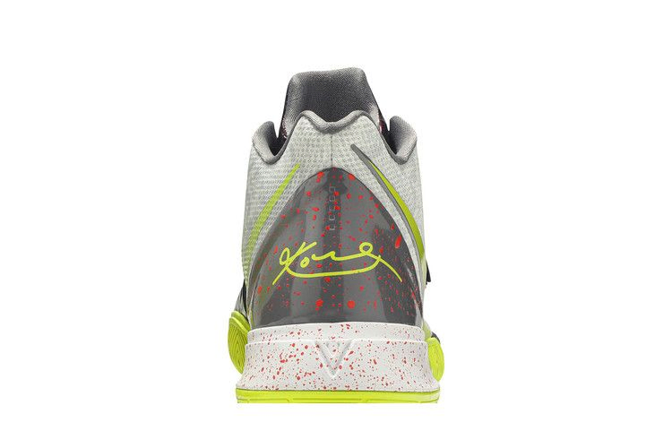 Отмечая День мамбы 2019 года, кроссовки Nike Kyrie 5 "Mamba Mentality" отдают дань уважения Коби Брайанту и тому влиянию, которое его карьера оказала на звезду мощного хоккея Кайри Ирвинга. В апреле 2019 года спортсмен посвятил эту версию популярным кроссовкам Zoom Kobe 5 Chaos, выпущенным в 2009 году и посвященным Джокеру. Модель выполнена в бело-кибернетической цветовой гамме на сетчатом верхе, который дополнен фиолетовым лакированным язычком и соответствующей панелью в центре стопы, вдохновленной мухоловкой. Серая пятка с красными вставками и тросы Flywire обеспечивают надежную фиксацию, а обновленная амортизация Nike Air Zoom Turbo - быструю отдачу энергии.