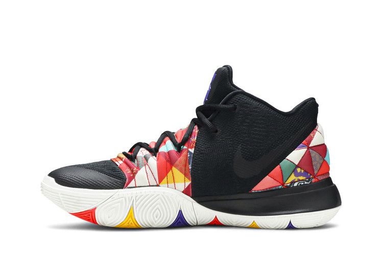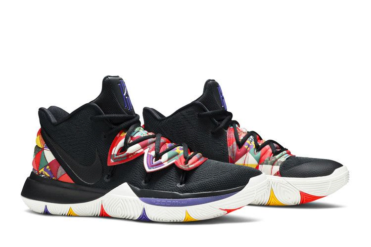 Kyrie 5 "Chinese New Year" вышли в начале 2019 года в рамках большой коллекции Nike, посвященной Году Свиньи. Пятые фирменные кроссовки Кайри Ирвинга одеты в черную сетку Engineered Mesh, которая украшена китайским лоскутным рисунком Bai Jia Yi на пяточной панели и накладкой, вдохновленной мухоловкой. Цветовая палитра коллекции передана на уникальной резиновой подошве, которая частично закрывает блок Air Zoom Turbo в межподошве.