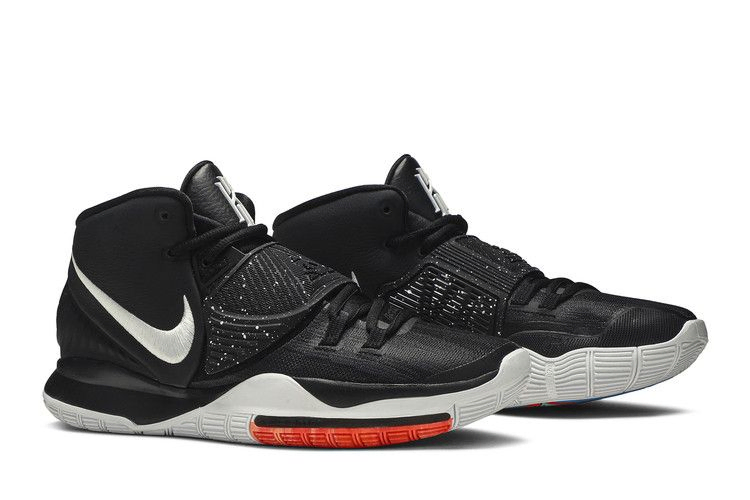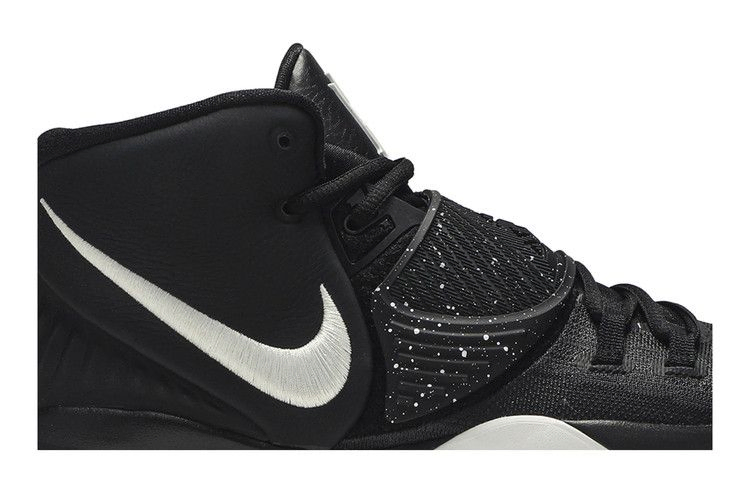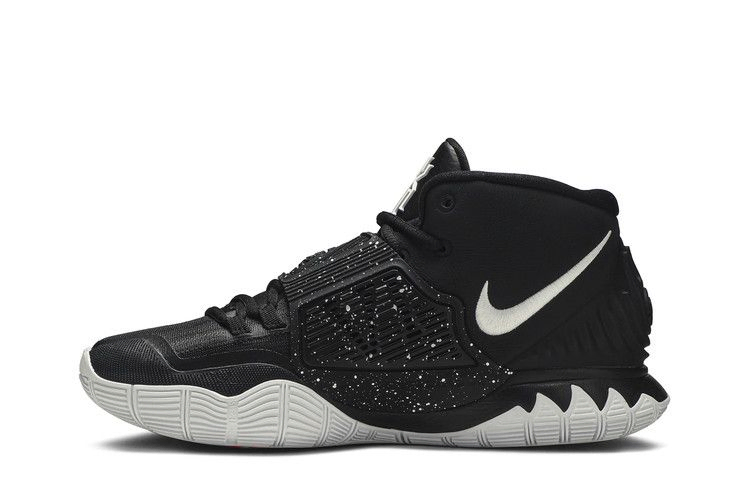 Nike разработал кроссовки Kyrie 6, уделяя больше внимания контакту с землей и всесторонней поддержке. Версия Jet Black, дебютировавшая в ноябре 2019 года, имеет верх из смешанных материалов, ремешок на средней части стопы со всевидящим оком, язычок с дополнительной набивкой и ребристую стойку пятки. Духовность и личность Ирвинга отражены в мотиве руки целителя, его мантре и числе 11. Основа обновлена с помощью блока Air Zoom Turbo в передней части подошвы и сцепления Traction 360 на изогнутой подошве.