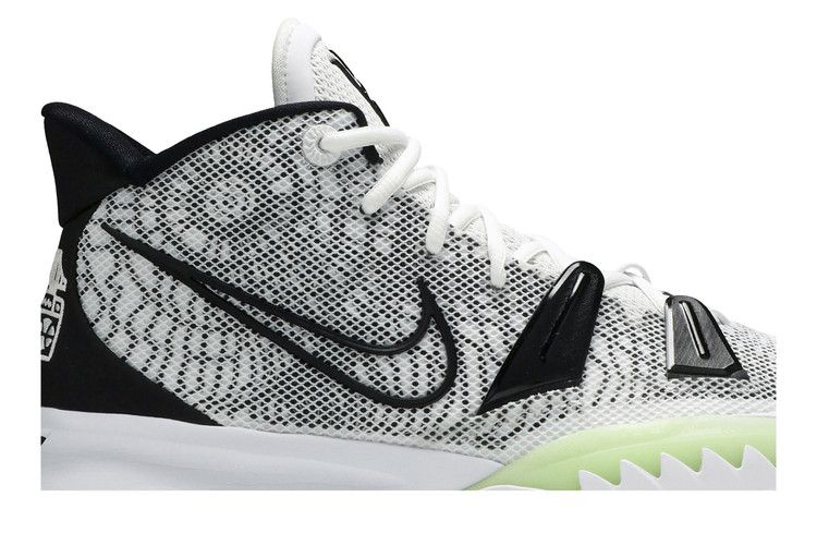 Модель Nike Kyrie 7 EP "Brooklyn Beats" посвящена связи между Бруклином и рэп-культурой, что подчеркивается вышитой графикой на пятке, изображающей Бруклинский мост на фоне бумбокса с колонками в форме баскетбольного мяча. Нейтральная черно-белая палитра применена к воздухопроницаемому сетчатому верху кроссовок, установленному на пенопластовую промежуточную подошву, дополненную блоком Air Zoom Turbo в передней части стопы. Версия EP эксклюзивно продается в Азии и имеет сверхпрочную резиновую подошву, предназначенную для игры на открытых площадках.