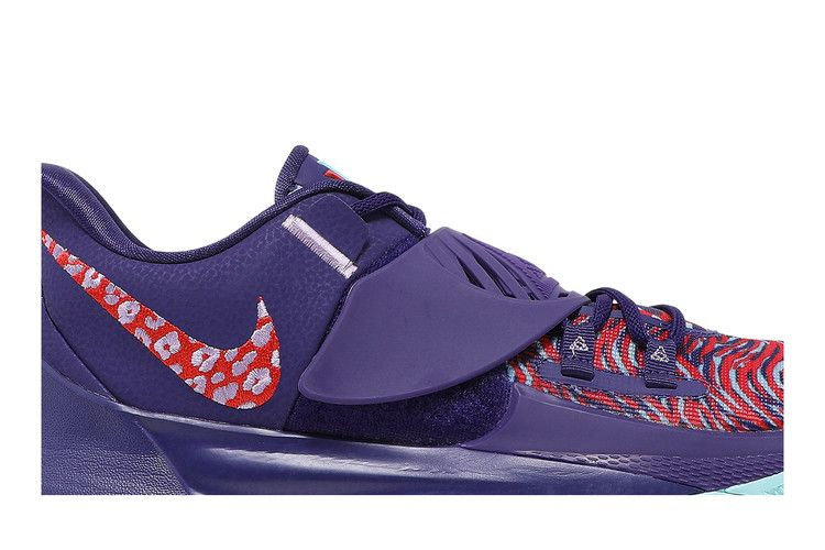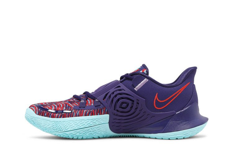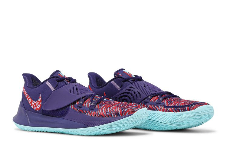 Модель Nike Kyrie Low 3 "Orchid" оживляет спортивную обувь калейдоскопическим вихрем ярких цветов на текстильной подошве. Литой регулируемый ремешок фиксирует верхнюю часть фиолетового цвета, украшенную цветочным принтом Swoosh на боковой стороне. Фиолетовая межподошва из пенополиуретана размещает амортизацию Zoom Air в пятке и передней части стопы, обеспечивая чуткую амортизацию при каждом шаге. Резиновая подошва цвета Glacier Ice обрамляет медиальную боковую поверхность, обеспечивая дополнительное сцепление с поверхностью во время быстрых бросков по асфальту.