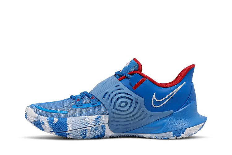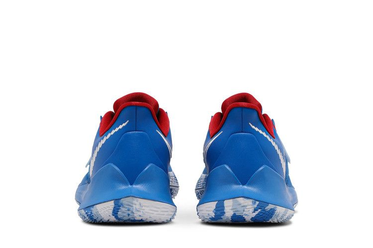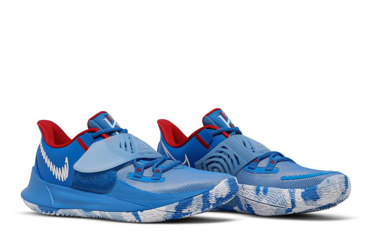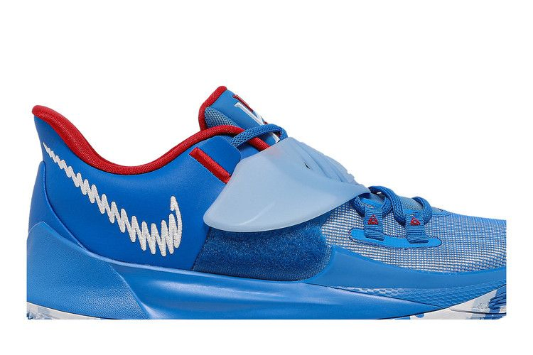 В модели Nike Kyrie Low 3 "New Jersey Nets Hardwood Classics" использована знакомая цветовая схема, восходящая к 90-м годам, когда команда "Нетс" базировалась в Ист-Рутерфорде, штат Нью-Джерси. Низкие кроссовки Kyrie Irving воссоздают облик винтажной формы команды, выполненной в небесно-голубой гамме с контрастными красными акцентами. В числе преимуществ - ремешок для фиксации в средней части стопы и мягкая подошва из пеноматериала с отзывчивой амортизацией Zoom Air в передней части стопы.