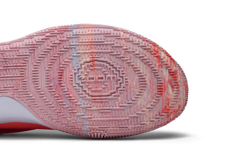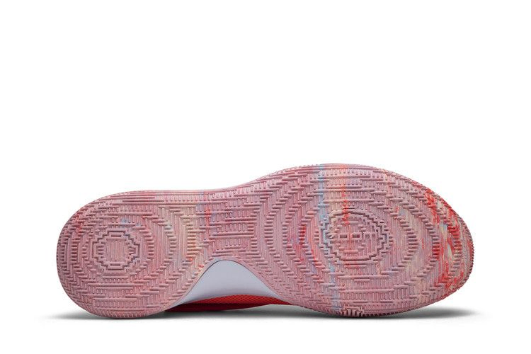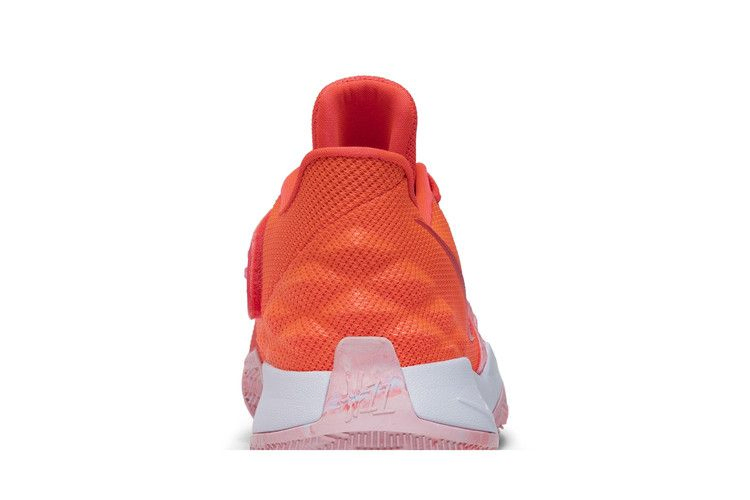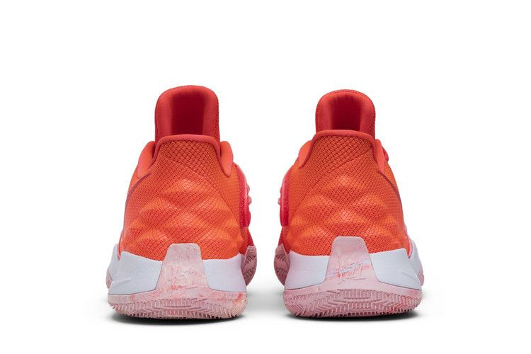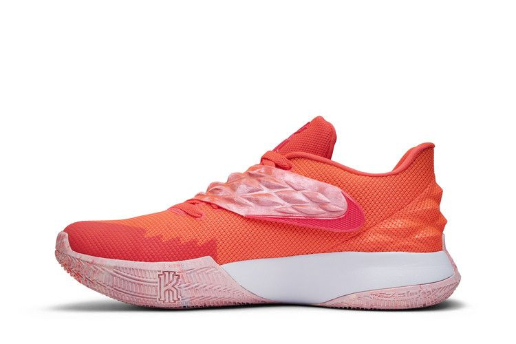Фирменная модель Kyrie впервые представлена в низком дизайне. Верхняя часть из бесшовной сетки выполнена в оттенках Hot Punch. Мраморный ремешок в средней части стопы добавляет поддержку и контраст, а гибридная подошва из материала Phylon и Zoom обеспечивает амортизацию. Как и первый силуэт Kyrie, кроссовки имеют ромбовидный узор на пятке, а на подошве - вихревой рисунок с разноцветными оттенками.