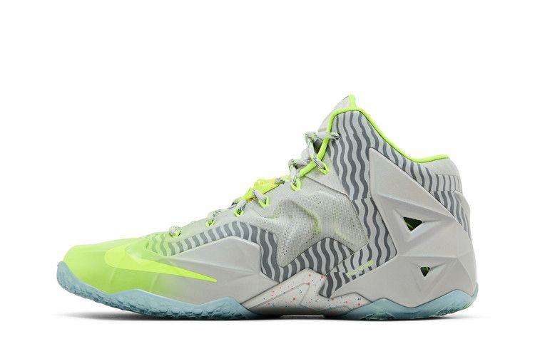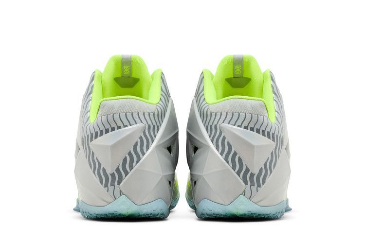 Коллекция Nike LeBron 11 Maison du LeBron воспевает страсть Леброна Джеймса к высокой моде. Эта итерация коллекции состоит из полосатого верха Hyperfuse и Hyperposite с градиентным переходом от Volt на носке к Metallic Luster на пятке. Кроссовки также оснащены стелькой Lunarlon с полноразмерной подкладкой Zoom Air и полупрозрачной подошвой льдисто-голубого цвета с разноцветными вкраплениями на голенище в средней части стопы.