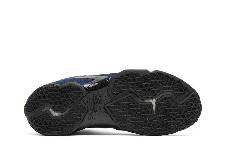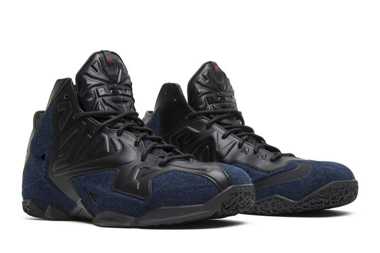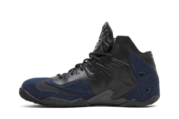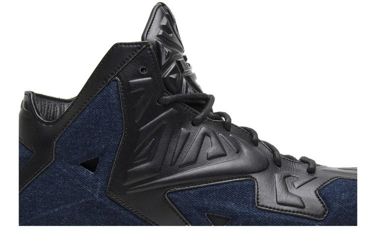 Модель LeBron 11 получила широкую известность благодаря своему техническому мастерству на корте. Чтобы расширить коллекцию, Nike выпустил необычное пополнение в семействе. LeBron 11 EXT Denim QS "Denim" имеют черный кожаный верх с темно-синими джинсовыми панелями по всей поверхности. Кроссовки имеют накладки Armorposite, кожаную подкладку, логотип Леброна на язычке и его подпись на средней пластине стопы.