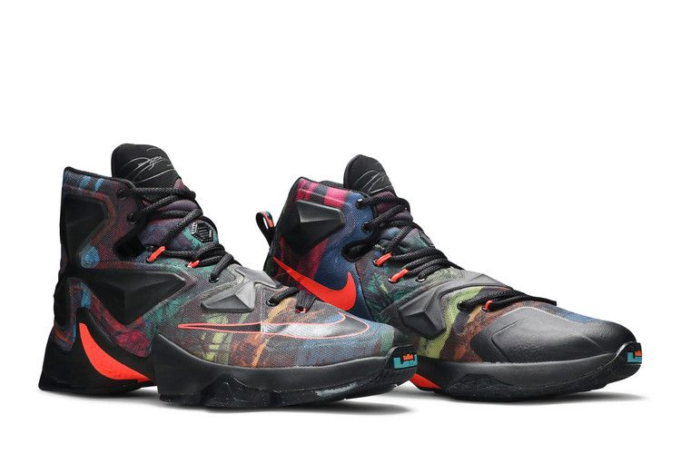 Философия Akronite вновь возвращается в линейку LeBron в его 13-м фирменном силуэте. Кроссовки представлены в пяти различных оттенках, которые отдают дань преданности Джеймса своему родному городу Акрон, штат Огайо, и его путешествию в Майами, используя мотивы звезды, озера, поля, холма и пляжа. В дизайне используется сетчатая конструкция Hyperfuse и тросы Flywire на люверсах для надежной фиксации.