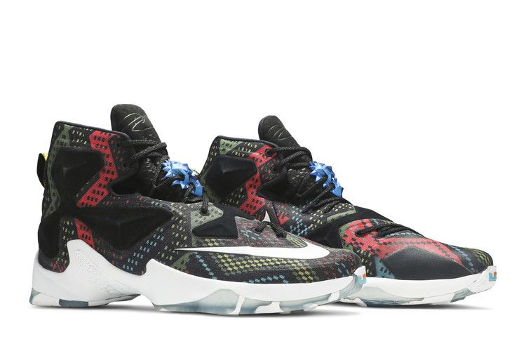 Эта лимитированная модель LeBron 13, выпущенная в преддверии Месяца черной истории в 2016 году, отдает дань уважения чернокожим спортсменам по всему миру. LeBron 13 'BHM' имеет черный сетчатый верх с конструкцией, напоминающей носок, и разноцветные геометрические мотивы по всей обуви в знак уважения к панафриканскому текстилю. Модель также имеет низкопрофильную амортизацию Zoom и резиновую подошву.