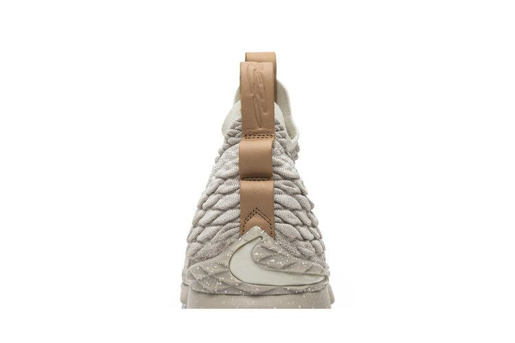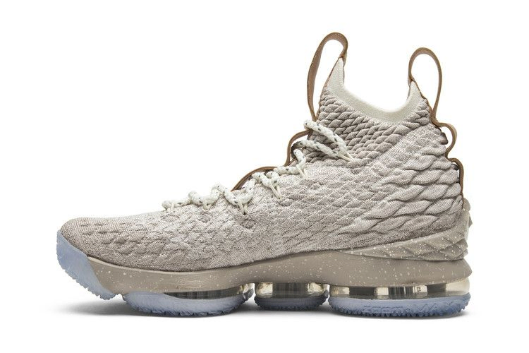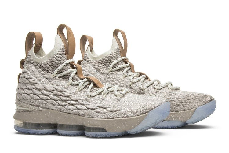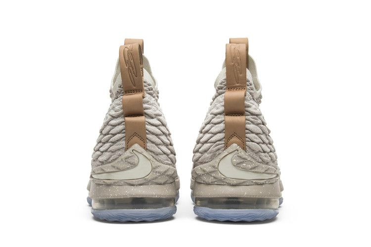 Выпущенные в октябре 2017 года, Nike LeBron 15 "Ghost" имеют светло-коричневый верх из материала BattleKnit с кожаными вставками Vachetta Tan, акценты Sail, тональную крапчатую межподошву и ледяную голубую полупрозрачную подошву. Комбинация Nike Zoom Air и Max Air в межподошве из пеноматериала обеспечивает легкую и отзывчивую амортизацию.