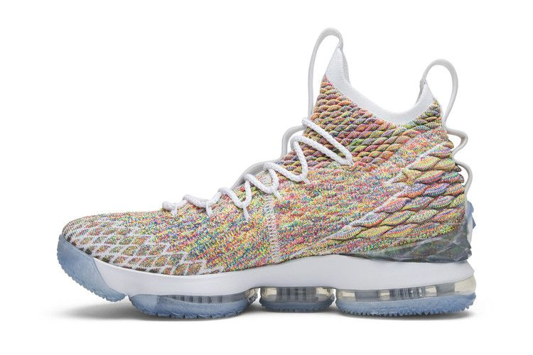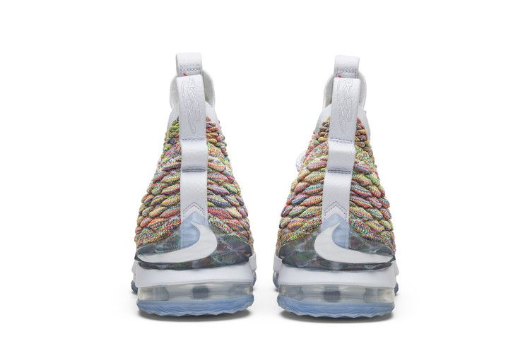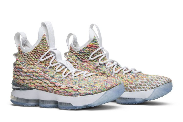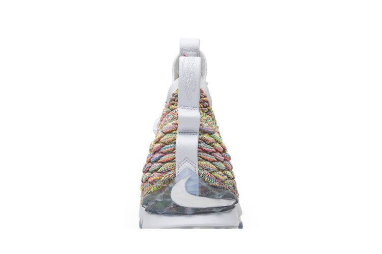 Вдохновленные любимыми хлопьями Леброна Джеймса на завтрак, LeBron 15 "Fruity Pebbles" были дебютированы на ногах Джеймса во время домашней игры в феврале 2018 года. Модель имеет яркий разноцветный верх из материала BattleKnit с белыми деталями на язычке, пяточном воротнике, шнурках и язычке. Другие детали: белая межподошва, прозрачный блок Zoom Air по всей длине, льдисто-голубая полупрозрачная подошва с фирменным брендингом LeBron на стельке. Модель вышла в продажу в марте 2018 года.
