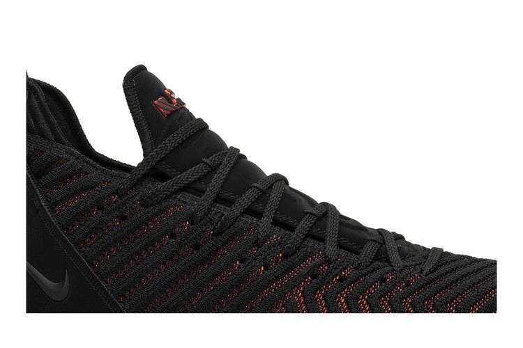 Эта версия 16-го фирменного силуэта Леброна отдает дань уважения линии Джордана. Верхняя часть Battleknit 2.0 выполнена в цветовой гамме Bred с черными и красными акцентами. В кроссовке используются амортизаторы Max Air и Zoom Air. Красные акценты прослеживаются в частично видимой амортизации, расположенной между черным верхом и подошвой.