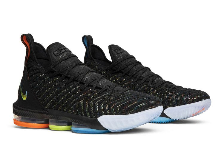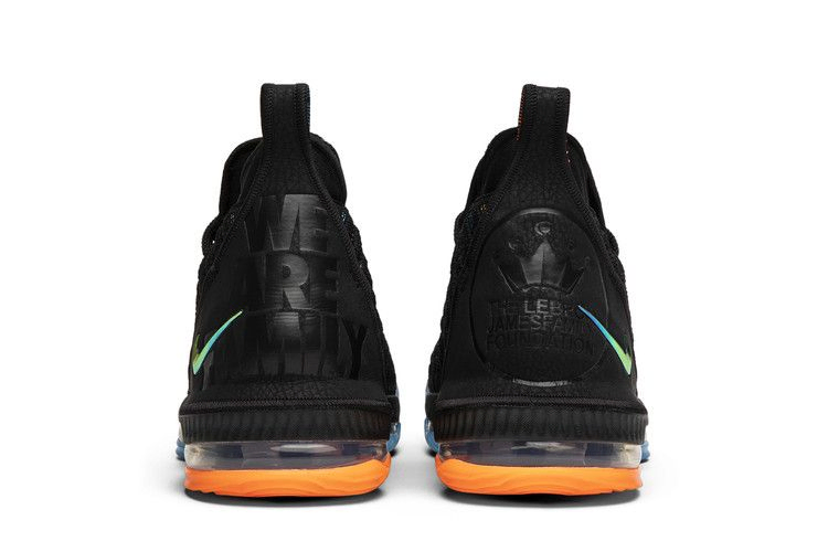 Модель LeBron 16 "I Promise" вдохновлена его детьми, а также школой I Promise, которую он основал в Акроне, штат Огайо. Верхняя часть кроссовка выполнена из черного текстиля Battleknit 2.0 для повышения гибкости и вентиляции, а также включает в себя несколько ярких оттенков на блоках Zoom Air и надпись "We Are Family" на левой кожаной панели пятки.