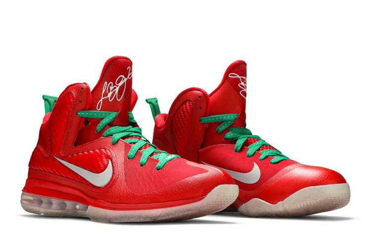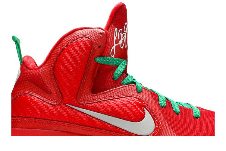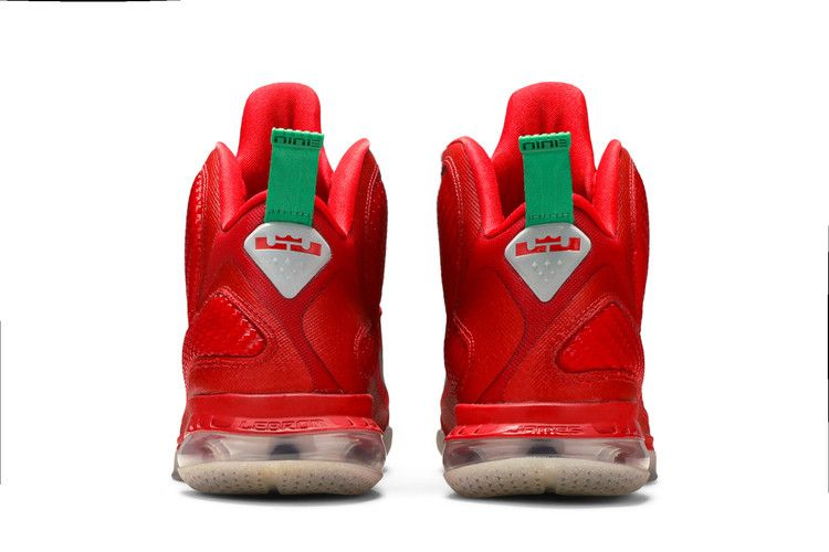 Дебютировав во время матча Майами Хит и Даллас Маверикс на Рождество 2011 года, рождественская версия LeBron 9 была выпущена на следующий день в честь праздничного сезона. Силуэт, выпущенный ограниченным тиражом и открывший сезон НБА 2011-12, отличается праздничным сочетанием красного цвета в верхней части, асимметричных шнурков Lucky Green и серебристого блеска Reflective Silver на полупрозрачной подошве.