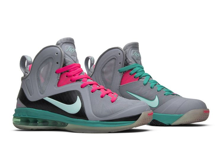 Выпущенные в июне 2012 года, Nike LeBron 9 P.S. Elite "South Beach" имеют синтетический верх цвета Wolf Grey с пастельными зелеными и розовыми акцентами, черную накладку из углеродного волокна и полупрозрачную подошву.