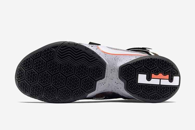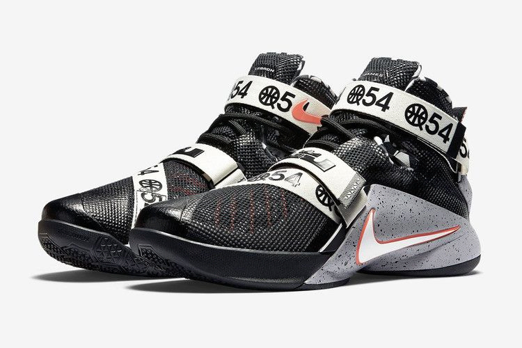 Lebron Soldier 9 - первые кроссовки от Jordan Brand, получившие тематический дизайн "Quai 54". На лодыжке и средней части стопы расположены ремешки с названием знаменитого международного турнира по стритболу. Лимитированная пара также имеет оригинальную графическую внутреннюю подкладку, горячую лаву и белые Swooshes, а также пятнистую подошву из пеноматериала Phylon.