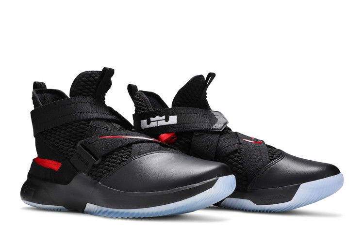 Кроссовки Nike LeBron Soldier 12 FlyEase "Black Red" в марте 2019 года будут одеты в классическую расцветку Jordan "Bred". Одетые с пятки до носка в черный цвет, эти элегантные кроссовки имеют трикотажный верх с тональными кожаными накладками, укрепляющими носочную часть и пятку. Регулируемые перекрещивающиеся ремешки с брендингом Swoosh фиксируют модель на ноге, а система молний FlyEase на пятке выделена красным цветом. Подошва ледяного синего цвета усилена амортизацией Zoom Air в пятке и передней части стопы.