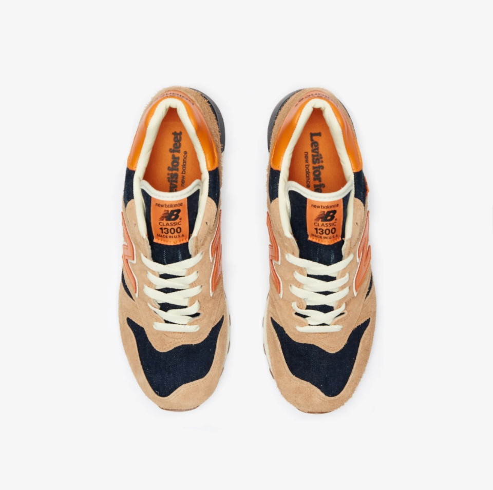 Кроссовки Levi's x New Balance 1300 Made In USA Orange Tab изготовлены из денима Cone Mills White Oak XX53 с коричневыми замшевыми накладками и оранжевой кожей на пятке и логотипом N сбоку. Фирменный оранжевый язычок Levi украшает боковую панель четверти, а стелька украшена логотипом Levi's for Feet.- Цвета: Orange/Tan/Indigo