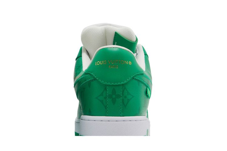 Модель Louis Vuitton x Air Force 1 Low 'White Gym Green' взята из коллекции AF1, созданной на заказ Вирджилом Аблохом в рамках одного из его последних проектов с французским люксовым брендом. Собранные на заводе Louis Vuitton в Фьессо-д'Артико, Италия, эти кроссовки украшены тональным принтом Monogram на двухцветном верхе из белой телячьей кожи и зеленого холста с эффектом "тромп-л'ойл". Надпись "Louis Vuitton Paris" выбита золотым шрифтом на язычке пятки и сочетается с фирменным шрифтом Вирджила Аблоха Helvetica на медиальной стороне кроссовка. Кроссовки установлены на белую резиновую подошву, украшенную двойным брендингом AIR, и поддерживаются зеленой резиновой подошвой.