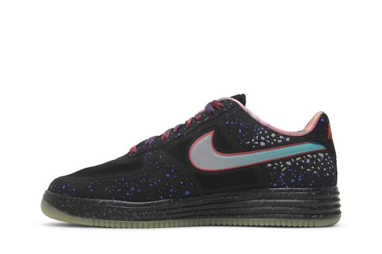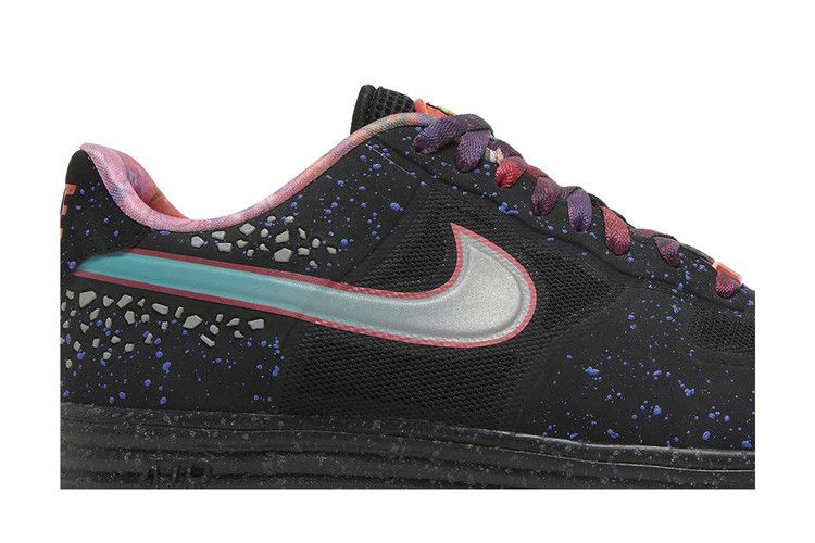 Это специальное издание Lunar Force 1 PRM QS является частью капсульной коллекции 2013 года, вдохновленной печально известной "Зоной 72" Nike, где, по слухам, находились рейганы Розуэлла. Дополняя мотив космоса, дизайн отличается яркими вкраплениями по всему верху, шнурками и подкладкой в стиле галактик, а также текстурой, напоминающей астероид, на пятке. Промежуточная подошва с лунным ландшафтом и полупрозрачная серая подошва завершают образ.